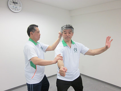鈴木会長と柄沢副会長の楊式太極拳の散手対拆(さんしゅたいせつ)